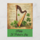 Este Día de St Patricks, a cualquiera le encantaría recibir esta postal de época con un tema musical de arpa, shamrock e irlandés.