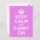 Color púrpura claro y blanco "Keep Calm and Carry On" versión moderna de poster clásico.