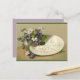 Esta postal tiene un ilustracion vintage de violetas moradas y blancas en una paleta. El mensaje en la paleta dice: "Mi deseo es la luz del año viejo, la alegría en el nuevo". Disfruta de tus nuevas hadas vintage y flores de cerezo Feliz Postal de Año Nuevo!