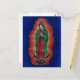 Nuestra Senora de Guadalupe, Nuestra Señora de Guadalupe, Santa Madre, Virgen María, Patrona de los Americanos, Emperatriz de América Latina, Protectora de los No Nacidos, Reina de México, ícono católico romano mexicano, figura religiosa. Días de Fiesta de Diciembre. Dibujo a lápiz de color por Loni. Pintura de Prismacolor de Elaan Yefchak. Virgen en brocado rojo, flores doradas, bata verde con estrellas purpurinas doradas, naranjas y rayos amarillos de luz, fondo azul oscuro.