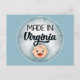 Esta graciosa postal presenta una cara de bebé blanca que dice "Hecho en Virginia" en un fondo azul. Perfecto para invitaciones de recién nacido o sólo para diversión.