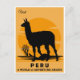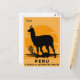 ¡A cualquiera le encantaría recibir esta tarjeta postal de turismo de viajes con un ilustracion retro de una llama en Perú, Sudamérica!