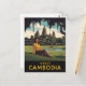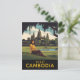 Este afiche de viajes de estilo vintage captura maravillosamente la belleza intemporal de Angkor Wat, sitio declarado Patrimonio de la Humanidad por la UNESCO en Camboya. El diseño se compone de una mujer que descansa en una zona con césped, con el magnífico complejo del templo y una piscina reflectante al fondo. El estilo artístico, con sus líneas audaces y sus ricos colores, evoca la época dorada de la publicidad de viajes. El simple texto, "Visita Camboya", agrega un toque clásico y retro.