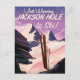 ¡Visita Wyoming! Jackson Hole a un afiche de viaje para esquiar. Afiche de viaje deportivo americano de esquí de estilo vintage.