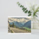 Postal de una hermosa vista de la Suiza Meiringen desde una carretera en el lado de los Alpes suizos. Meiringen es un municipio del distrito administrativo de Interlaken-Oberhasli, en el cantón de Berna, en Suiza. Como telón de fondo se pueden ver los valles y los acantilados escarpados de los Alpes Suizos, que se elevan a lo alto.