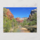 Postcard con una imagen del río Virgin que se origina justo al norte y este del Parque Nacional Zion y fluye por el suroeste de Utah, al noroeste de Arizona, y eventualmente hasta el Lago Mead en Nevada. El río tiene aproximadamente 261 km de largo y es una fuente crítica de vida para una notable variedad de ecosistemas. Fue designado el primer río salvaje y pintoresco de Utah en 2009, durante la celebración centenaria del Parque Nacional Sion. Consulte el pegatina correspondiente. Vea la colección completa de la tarjeta postal Zion en la sección CARDS, POSTCARDS & PEGATINAS.