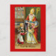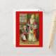 Imagen francesa del vintage clásico de St. Nicolás que entrega los regalos del navidad a dos pequeños niños. La mirada de los niños encantada.