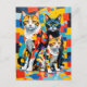 Postal Vivid Modern Cubist Cats Art
