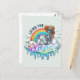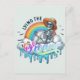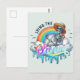 Una postal caprichosa que presenta un esqueleto descansando sobre nubes esponjosas con un fondo de arcoíris colorido y letras negritas que dicen "Viviendo el Sueño". Un regalo divertido e irónico para aquellos que aman el humor oscuro, el arte surrealista y el sarcasmo juguetón. Ideal para soñadores, amantes del humor y cualquiera que disfrute de un giro ligero en el viaje de la vida.