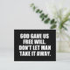 Cita a favor de la elección contra la ley de aborto de Alabama. Dios Nos Dio Libre Voluntad. No dejes que el hombre se lo quite. Votar por senadores y congresistas que defiendan a Roe V. Wade y luchen por el acceso de las mujeres a opciones de salud seguras. Pónganse de pie para que las clínicas de mujeres y el derecho al aborto elijan con este regalo a favor de la elección.