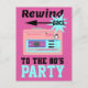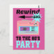 Rebobinado De vuelta a los años 80, este diseño presenta un estilo retro de los años 80 en rosa y azul con un texto que dice: "Rebobina de vuelta a los 80".