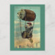 Milwaukee se ve bien para mí... Un hombre con una gorra de capitana y bigote blanco vuela sobre un bigote de cerveza que está suspendido por salchichas de un barril de cerveza que tiene una hélice hecha de botellas de cerveza. El fob de reloj del hombre tiene forma de pretzel en esta vintage postal de 1912.