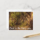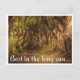 Mystischer, verschlungener Weg in einem Wald. Postkarte mit dem Spruch "Best in the long run."
