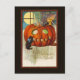 arte vintage de Halloween con hadas, gato negro y calabaza.
