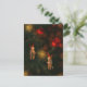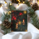 A cozy hand-painted Christmas illustration featuring two charming reindeer ornaments dressed in striped scarves nestled among lush pine branches. Glowing golden lights and red baubles illuminate the dark green foliage, creating a nostalgic and heartwarming holiday atmosphere. The soft brushstrokes and warm tones capture the quiet magic of Christmas night — gentle, festive, and full of warmth.
