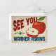 Una encantadora postal de viaje de Warner Robins Georgia con una hermosa manzana roja, junto con un divertido texto de estilo retro que dice: "Nos vemos en Warner Robins"