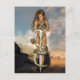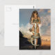 Tarjeta de fantasía de un bello elfo guerrero con una espada y una serpiente serpenteó alrededor de la espada.