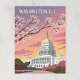 Un hermoso ilustracion vectorial del Capitolio de los Estados Unidos enmarcado por ramas florecientes de flores de cerezo, situado contra un cielo suave y colorido. Las palabras "WASHINGTON D.C." se muestran en la parte superior, capturando la icónica belleza de la primavera de la capital de la nación.
