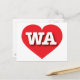 Esta postal tiene un vibrante corazón rojo que contiene las letras audaces, blancas y superiores del funda WA, la abreviatura oficial de Washington, el estado de siempre verde. El lado inverso de la postal está en blanco, a la espera de tus sentimientos escritos a mano o de tu texto personalizado.