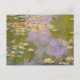 Postal con el cuadro, Water Lilies (1919), del impresionista francés Claude Monet (1840-1926). Un paisaje panorámico de un estanque de lirios con nenúfares rosas sobre el agua de lavanda.