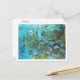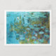 Postal de arte fino con la pintura de Claude Monet (1840-1926), Water Lilies 1914. Está decorado con un apacible paisaje de estanque con colchonetas de lirios verdes y flores rosas sobre un agua azul llamativa.