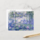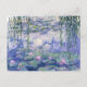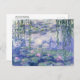 Postal con el cuadro Ninféas - Water Lilies (1916-1919) de Claude Monet (1840-1926), renombrado pintor impresionista francés. Las obras de arte representan un estanque de lirios adornado con flores rosas y nubes que reflejan el agua, inspiradas en los jardines acuáticos de Monet.