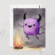 Postal Watercolor Cute Purple Monster and a Campfire