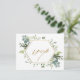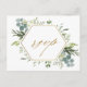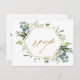 Esta postal nupcial de rsvp presenta eucalipto de acuarela pintada, hojas verdes, flores con un marco falso hexágono geométrico de oro. Para una personalización más avanzada de este diseño, haga clic en el enlace "Personalizar más adelante". También están disponibles los elementos coincidentes.
