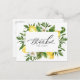 Envíe gracias con este personalizable gracias postal. Presenta un marco acuarela de limones y flores de limón con tipografía moderna. Personalice agregando sus detalles. Esta postal es perfecta para bodas, cumpleaños, duchas para bebés y duchas de novias.