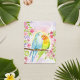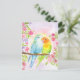Postal Watercolor Love Birds with Pink Flowers