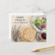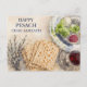 Celebrate the beauty and meaning of Passover with this elegant watercolor illustration featuring traditional Seder elements. Soft hand-painted textures showcase matzo, a silver Seder plate with symbolic foods, a Kiddush cup of wine, and spring branches, all set against a warm neutral background. The greeting “Happy Pesach – Chag Sameach” appears in a classic serif font, creating a timeless and refined look.