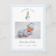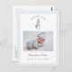 Cute watercolor Peter Rabbit baby boy Thank you Birth announcement postcard with photo and birth stats with Blue and white gingham border.