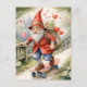 Postal Watercolor Skateboarding Valentine Gnome