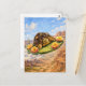 Postal Watercolor Turtle flying on a magic cactus pad