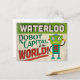 Un divertido diseño de viajes vintage de Waterloo Iowa con un robot amistoso con un divertido texto de estilo retro que dice: "¡Waterloo, capital robótica del mundo!"