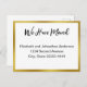 This moving announcement says "We Have Moved" in a cursive, scribble-style script. We Have Moved is on the top line. The other lines are not in script and are for your name(s) and new address. The card is white with black text. The faux gold border is not made of foil. All text can be edited or deleted.