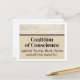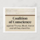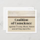 Nosotros, el pueblo, somos la coalición de conciencia contra Trump, Musk Vance y todo lo que defienden y hacen. Descripción del diseño: El trasfondo es el comienzo de la Constitución de los Estados Unidos, que comienza con el preámbulo "Nosotros el pueblo" y el artículo 1, que es la sección sobre la legislatura. Justo debajo del comienzo del Artículo 1, hay una línea y debajo, un espacio vacío que dice "Coalición de Conciencia" en letras grandes, y en un texto más pequeño debajo, "contra Trump, Musk, Vance y todo lo que representan". La línea es un marrón que se supone que recuerda el color de la tinta de la Constitución. El espacio vacío es una crema marrón, para recordar el color del pergamino de la Constitución. El texto es negro.