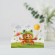 A cheerful 3D crab wearing a frog hat holding a rainbow umbrella and thermometer while observing weather elements. Playful and perfect for creative climate illustrations.