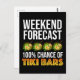 Weekend Forecast - 100% Chance of Tiki Bars. Aloha! Take this to your next Hawaiian luau party, tropical vacation, or to the tiki bar or tiki room and enjoy a tropical drink. Great to take on a tropical cruise, honeymoon, summer vacation or spring break. Perfect summer gift for lovers of Hawaii, Hawaiian tiki bars and tiki culture. Enjoy a nice tropical cocktail or mixed drink on the beach. Design has a picture of a coconut with a straw and yellow hibiscus flowers.
