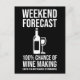 Weekend Forecast - 100% Chance of Wine Making (With a Slight Chance of Drinking). This accessory would make a great gift for anyone who's a wine lover and loves to make their own wine. Great for a wine maker who loves brewing wine from grapes as a hobby. Do you love to make your own wine at home? Do you enjoy using wine making kits for homebrewing? Then this design is for you! Features a graphic of a wine bottle and wine glass.
