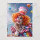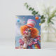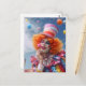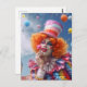 Weiblicher Clown mit Blumen. Lustige Postcard