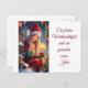 Ein freundliches kleines Mädchen mit einem kleinen Geschenk in der Hand bestellt viele Grüße zum Fest.