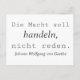 Dieses Johann Wolfgang von Goethe "Die Macht soll handeln, nicht reden". Typografie Zitat Design en tolles Geschenk für Freunde und Verwandte. Genau richtig zum Geburtstag, B-Day, Weihnachten. Für Oma, Opa, Papa, Mamá, Bruder, Schwester.