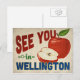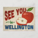 Una encantadora postal de viaje vintage de Wellington Florida con una hermosa manzana roja, junto con un divertido texto de estilo retro que dice, "Nos vemos en Wellington"