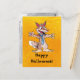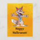 Un hombre lobo personalizado con una sonrisa grande y aguda, manos y pies humanos espeluznantes, y una corbata azul hecha jirones, en una postal de Halloween para mandarla a tus amigos!