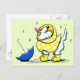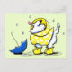 Ilustracion dibujado a mano de un Westie vestido con un impermeable de pato amarillo que le toma lluvia en la lengua. Gran arte para los amantes de los perros, de vuelta a la escuela, profesores, de los tontos de abril y de las duchas para bebés.