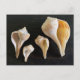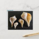 My photography of collected seashells postcard, with option to personalize with a message. Lightning whelks (two on left) and Pear whelks are compared in this photo. The apertures (shell openings) are showing, and it is the big difference between these similar mollusks. One makes its shell with a left-handed opening, and the other has a more common opening on the right side. The shells were collected from Florida waterways and were found empty. Use this interesting postcard to reach out to friends, for business, or any communication. It is also collectable as a photo card.