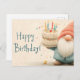 Postal Whimsical Birthday Greeting: Gnome Holding a Cake