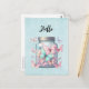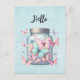 A postcard with a magical image featuring pastel colored butterflies in a jar.