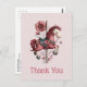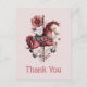 Thank you postcard with a cute retro style carousel horse. Drawn in Pretty pink colors with fancy flowers.